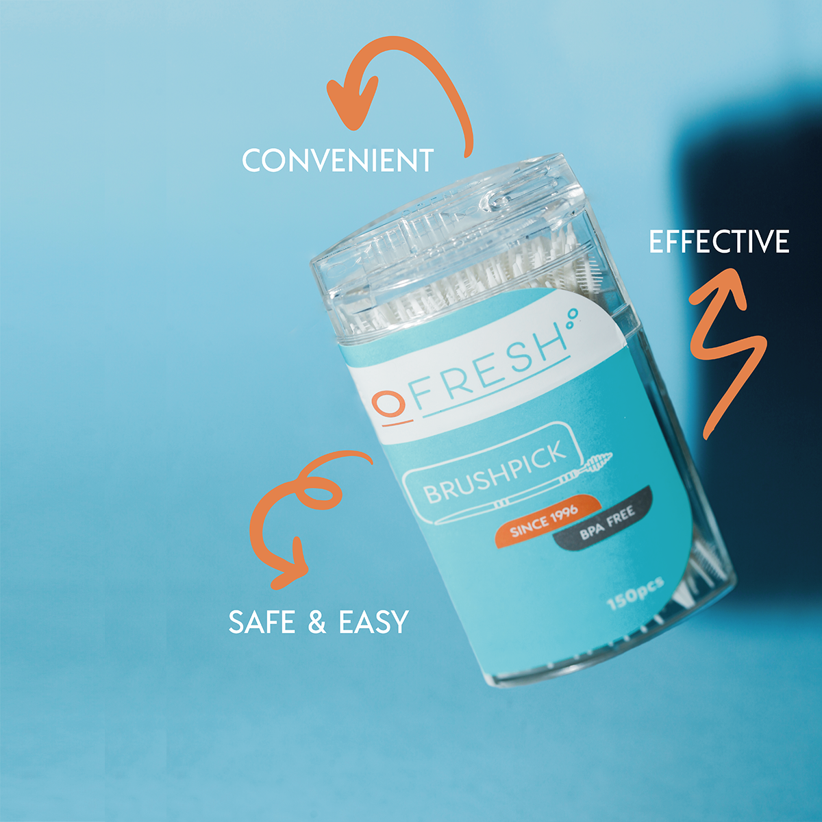 OFresh Brushpick helps to remove any food particles after meals, preventing bad breath and unwanted plaque build-up. It is gentle on our gums and combines the functions of both interdental brushes and the traditional toothpick to effectively remove food particles from hard to reach areas. Your oral care regime made easy!